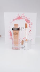 The Healthy Foundation is beautifully packaged in a glass bottle with a doe foot applicator. Although glass isn’t travel friendly, it is luxurious to look at, touch and is better for the environment. The use of the doe foot applicator is not my favorite means to dispense the foundation as the product does not remain hygienic and I found it difficult to get sufficient product out on the applicator for a full face of foundation. I had to dip back into the bottle approximately 4 to five times to get enough product out. The foundation also doesn’t have the most pleasant scent. It smells quite chemical laden, but this smell dissipates once the foundation is blended onto the skin.
